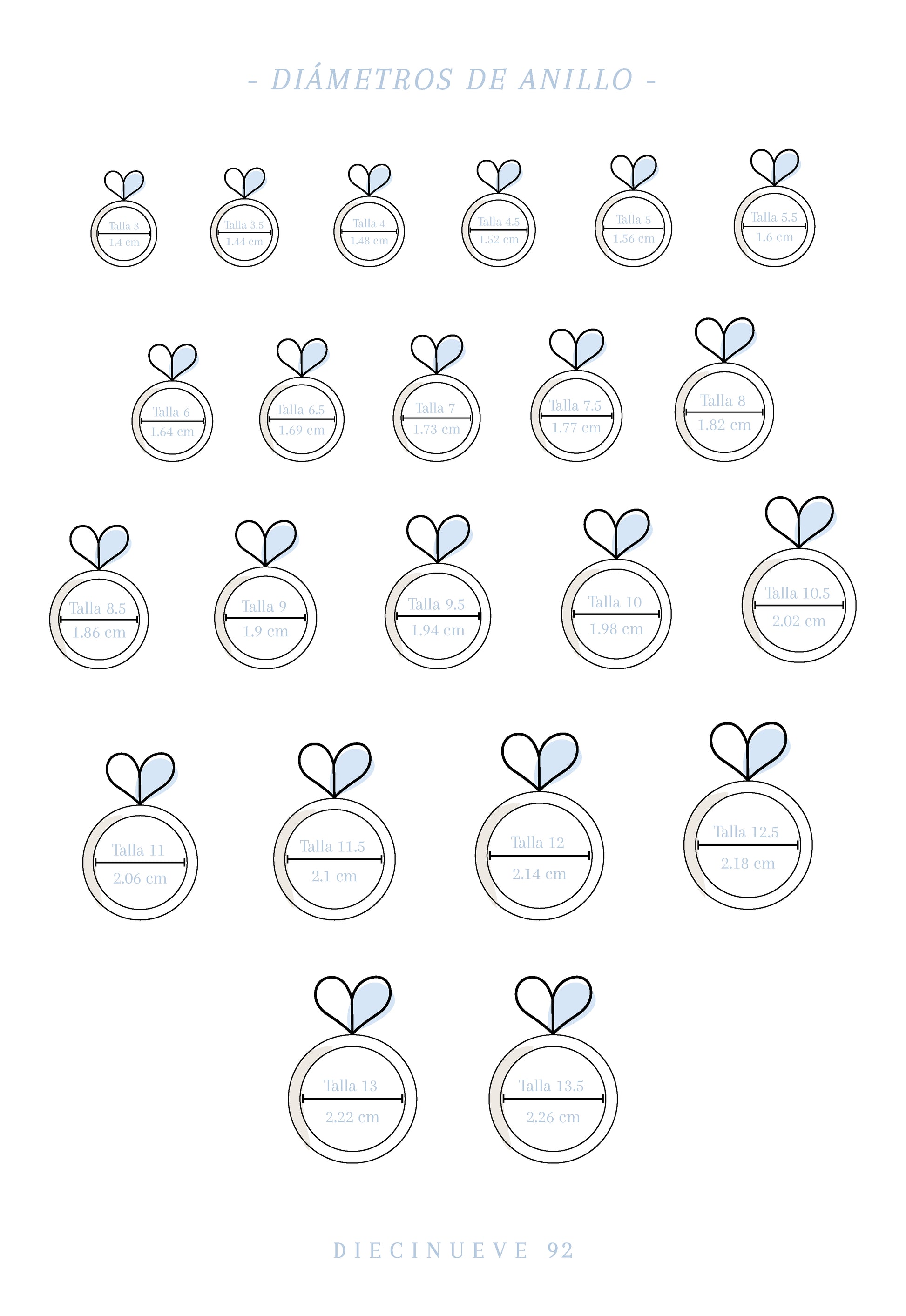 Esa medida en centímetros la localizarás en nuestra tabla para conocer tu número de anillo ideal.