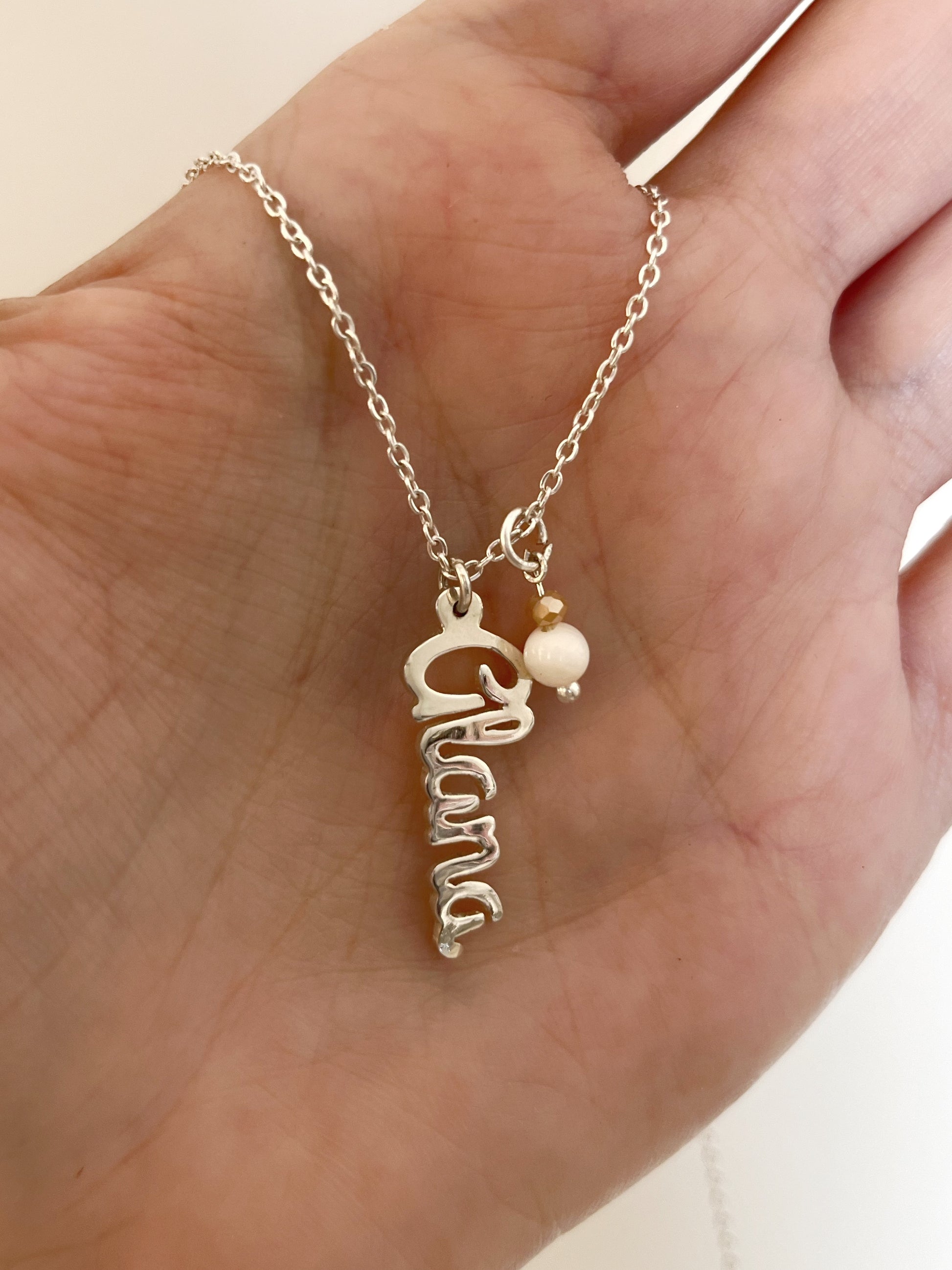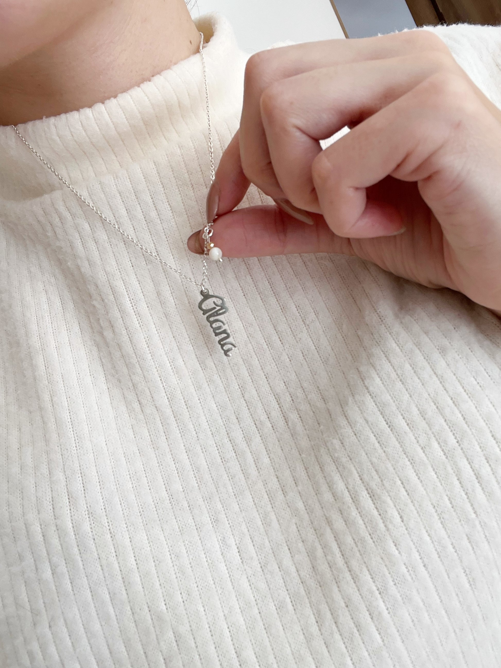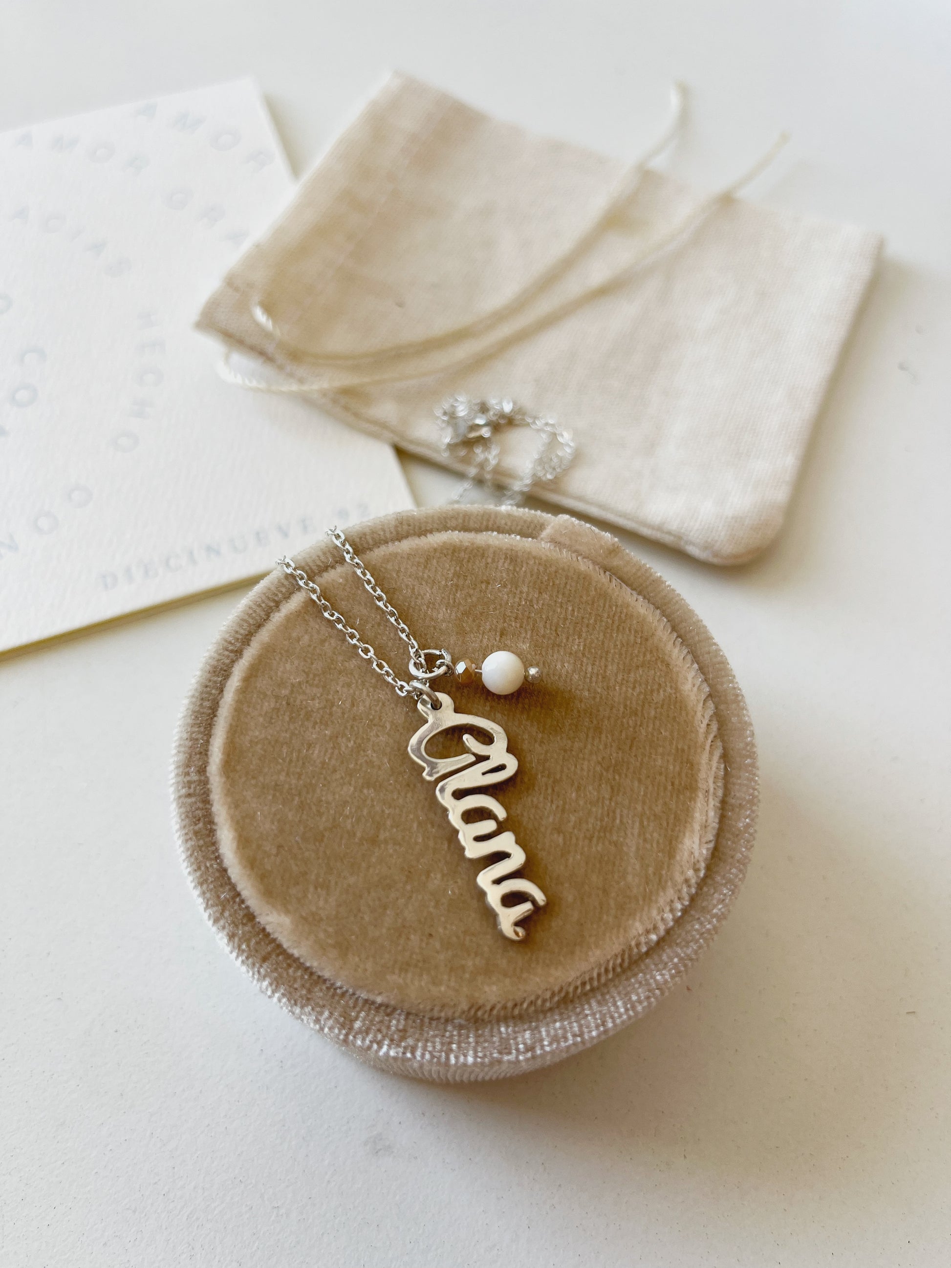 Collar con nombre personalizado acompañado de perla cristal y un cristal