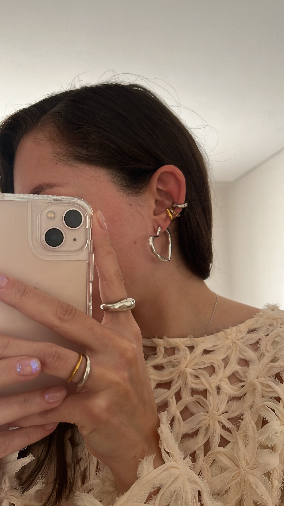 Aretes largos con un estilo derretido, como una estela que deja rastro, perfectamente IMPERFECTO. Combínalos con nuestros chunky earcuffs